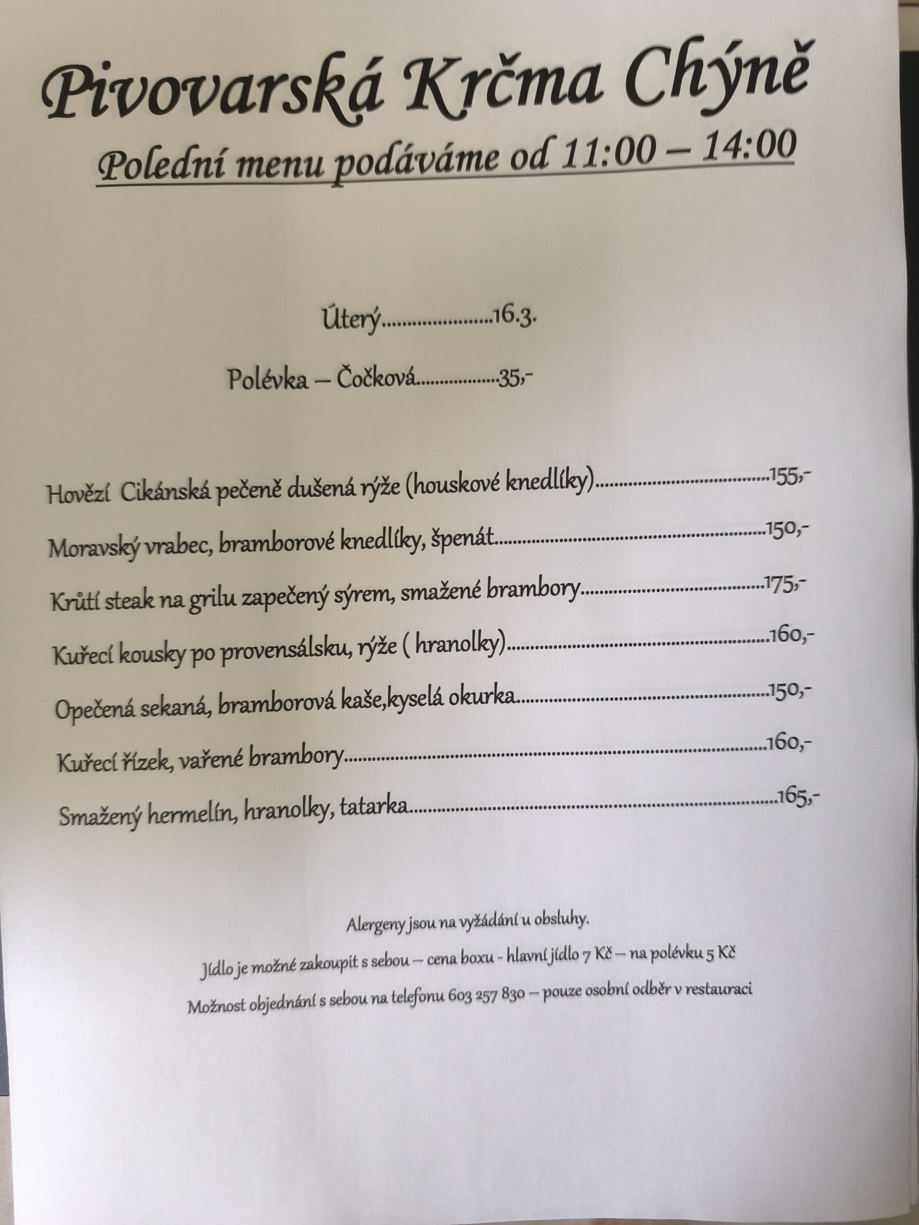 🕚 Každý všední den od pondělí do pátku nabízíme polední menu od 11:00 do 14:00 – vždy čerstvé, chutné a poctivě připravené.